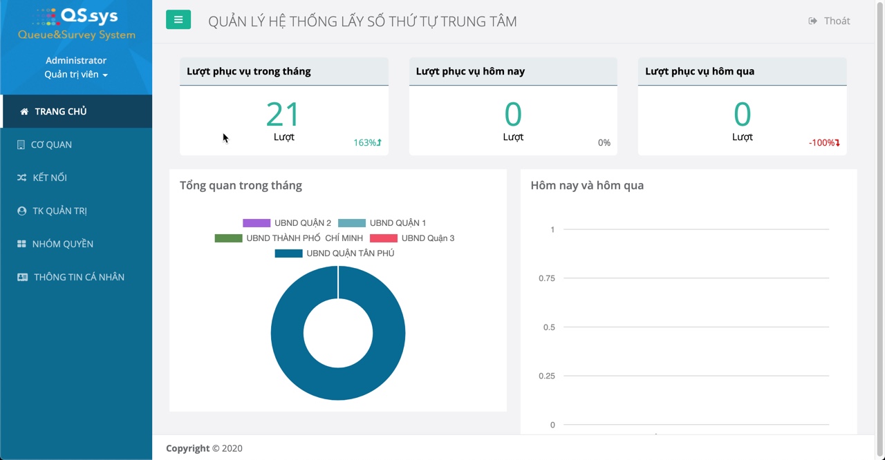 Mô-đun báo cáo và giám sát đầy đủ về tình trạng phục vụ và theo khoản thời gian cụ thể, được hiển thị trực quan cho nhân viên quản trị.